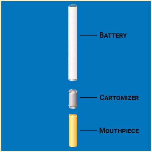 Concrètement, chaque atomiseur possède au moins deux pôles, positif et négatif, reliés par une bobine. Cette bobine entoure un matériau absorbant, imbibé de e-liquide par capillarité. À chaque bouffée, le liquide s’évapore jusqu’à épuisement du réservoir ou de la mèche.